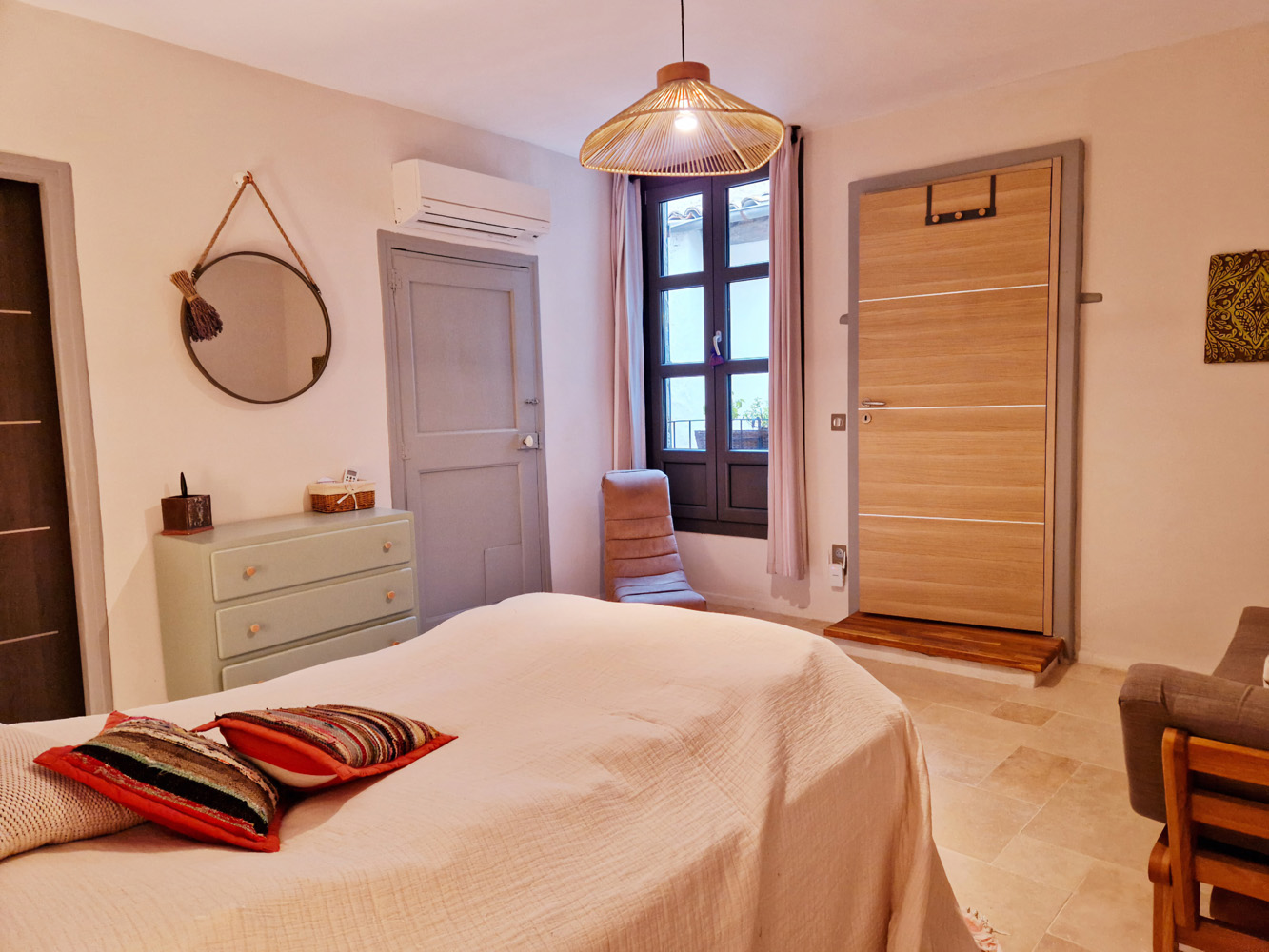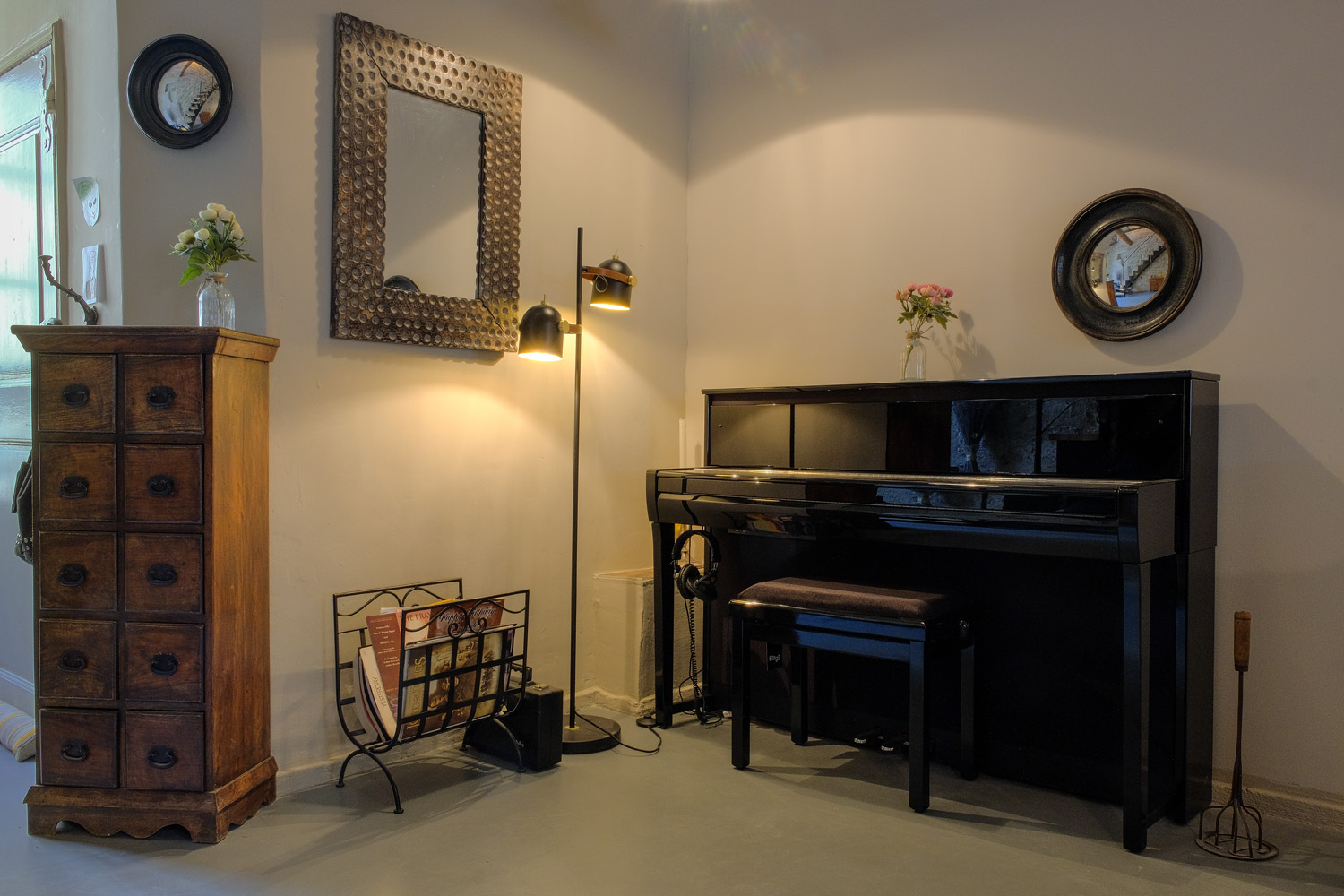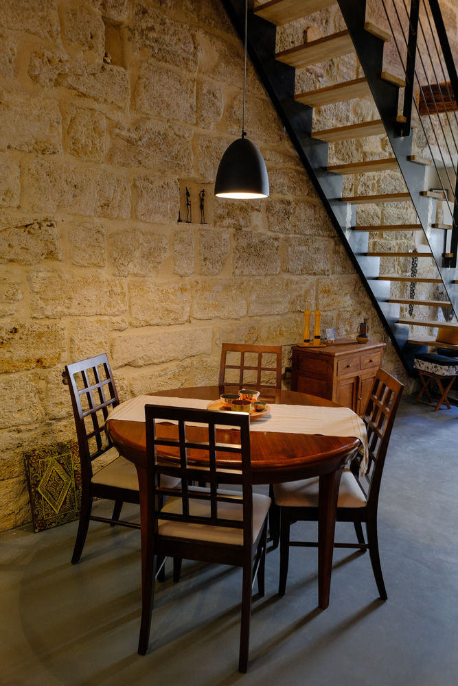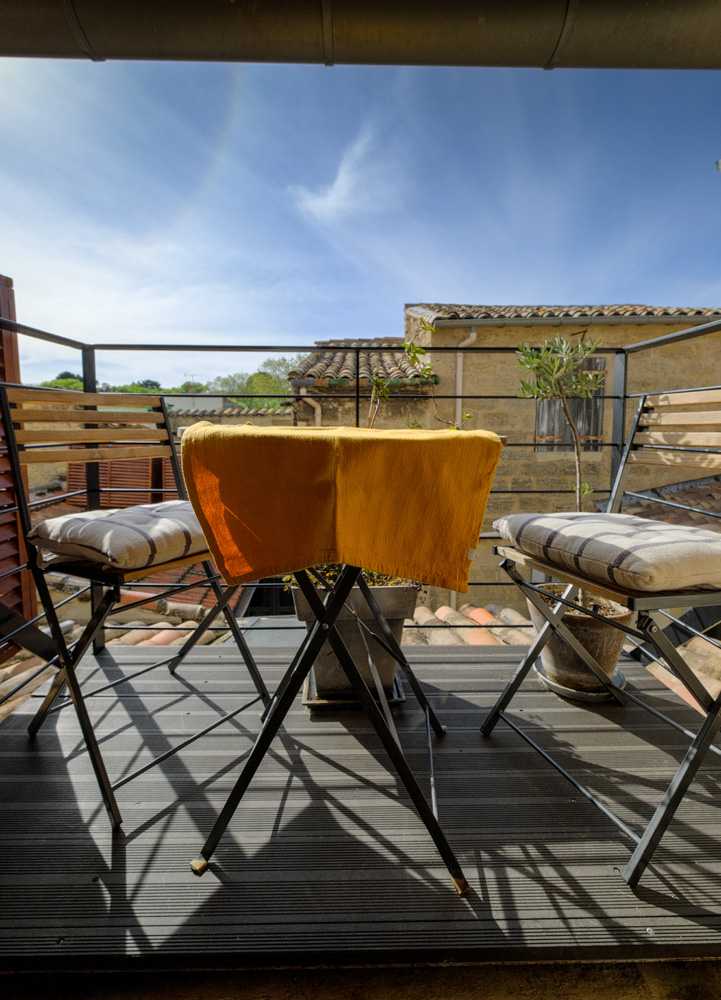 At the foot of the bed, the former tiny door onto a rickety balcony of sorts is now replaced by a massive folding window and door frame onto a new and much needed reinforced breakfast balcony looking out onto the main terrace. The evening sun shines directly onto this private balcony and casts a beautiful sunset glow onto the floor. Too hot to dine in the summer, too cold in the winter, so we dash for the in-between season when it’s just right!