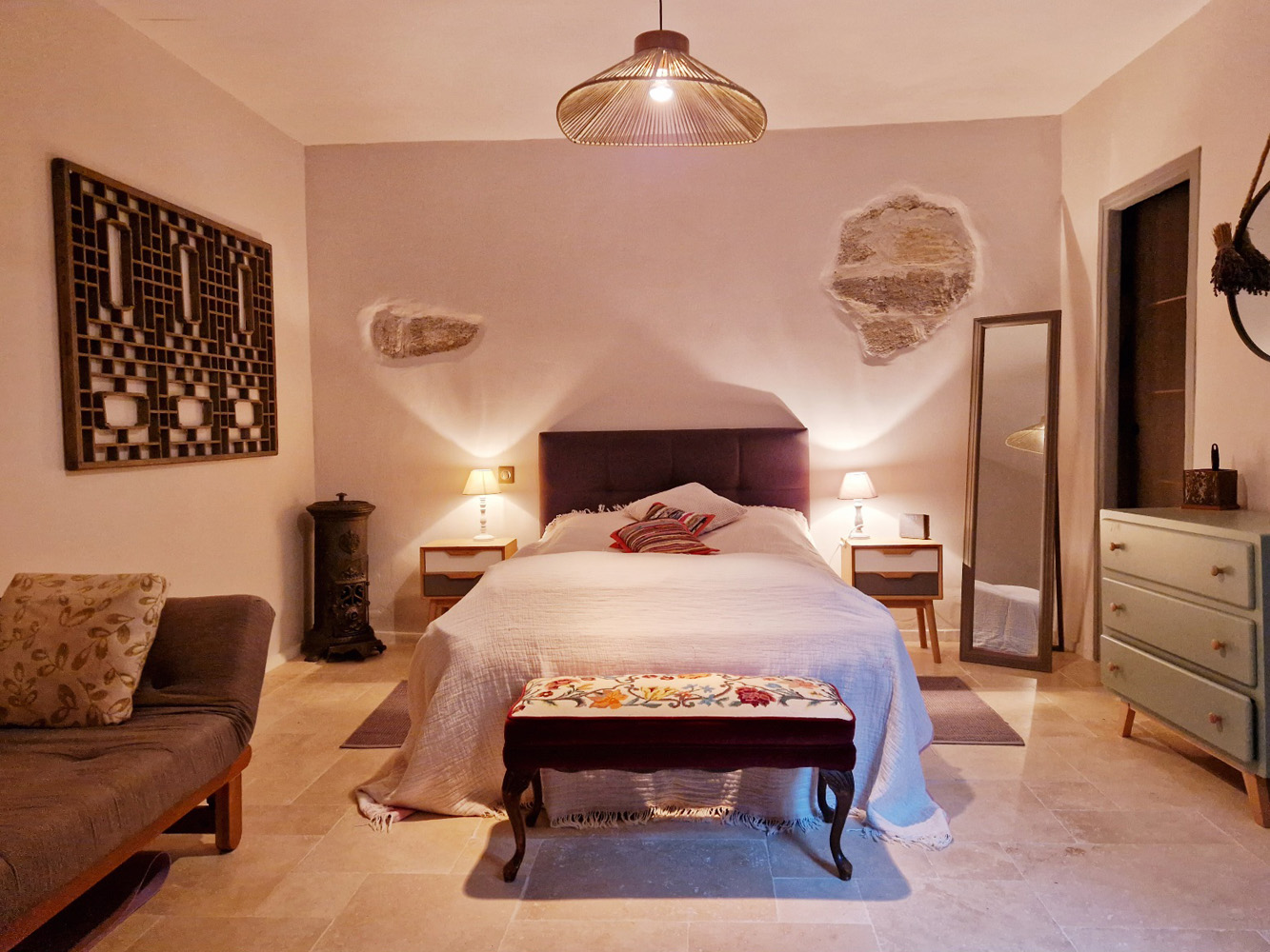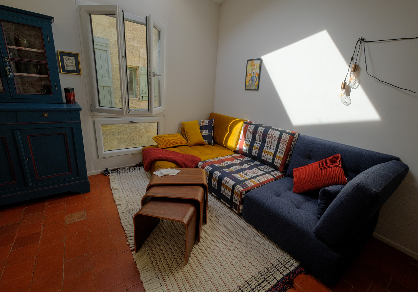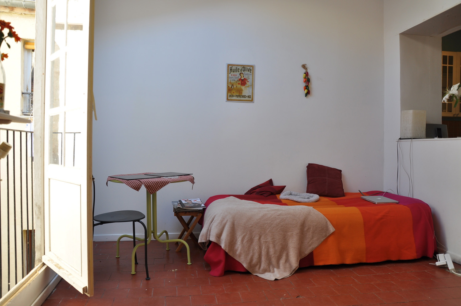 At the foot of the bed, the former tiny door onto a rickety balcony of sorts is now replaced by a massive folding window and door frame onto a new and much needed reinforced breakfast balcony looking out onto the main terrace. The evening sun shines directly onto this private balcony and casts a beautiful sunset glow onto the floor. Too hot to dine in the summer, too cold in the winter, so we dash for the in-between season when it’s just right!