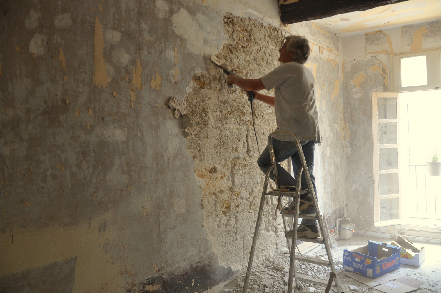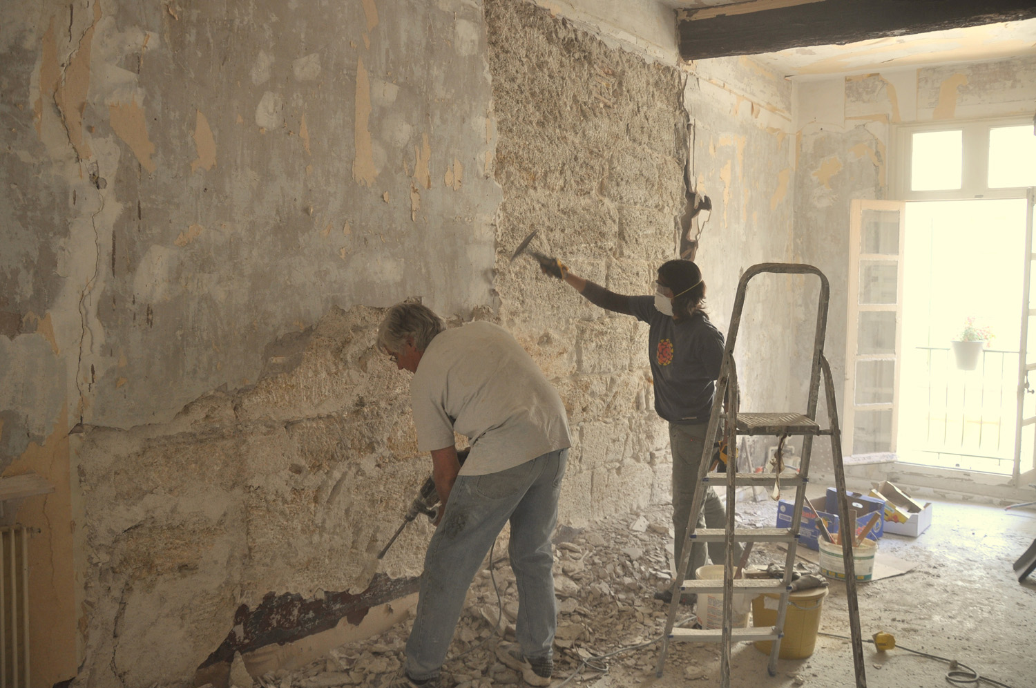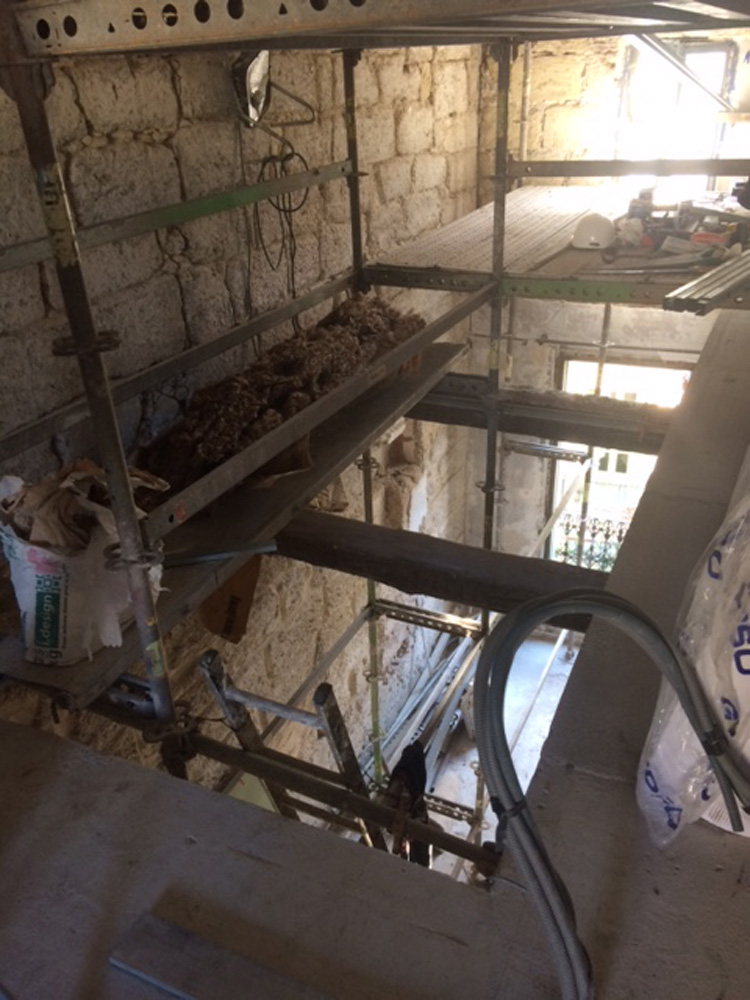 Once the rental accommodation renovations were completed, we moved the team upstairs to attack the upper floors. For this we had to turn to our Architect friend Anne to lead the expanded team of artisans. With Anne’s genius idea of installing a new inner staircase, we could provide a stunning and first-time access from the second floor to the old unused attic floor above. Check out the amazing before & after pix as this project took shape…